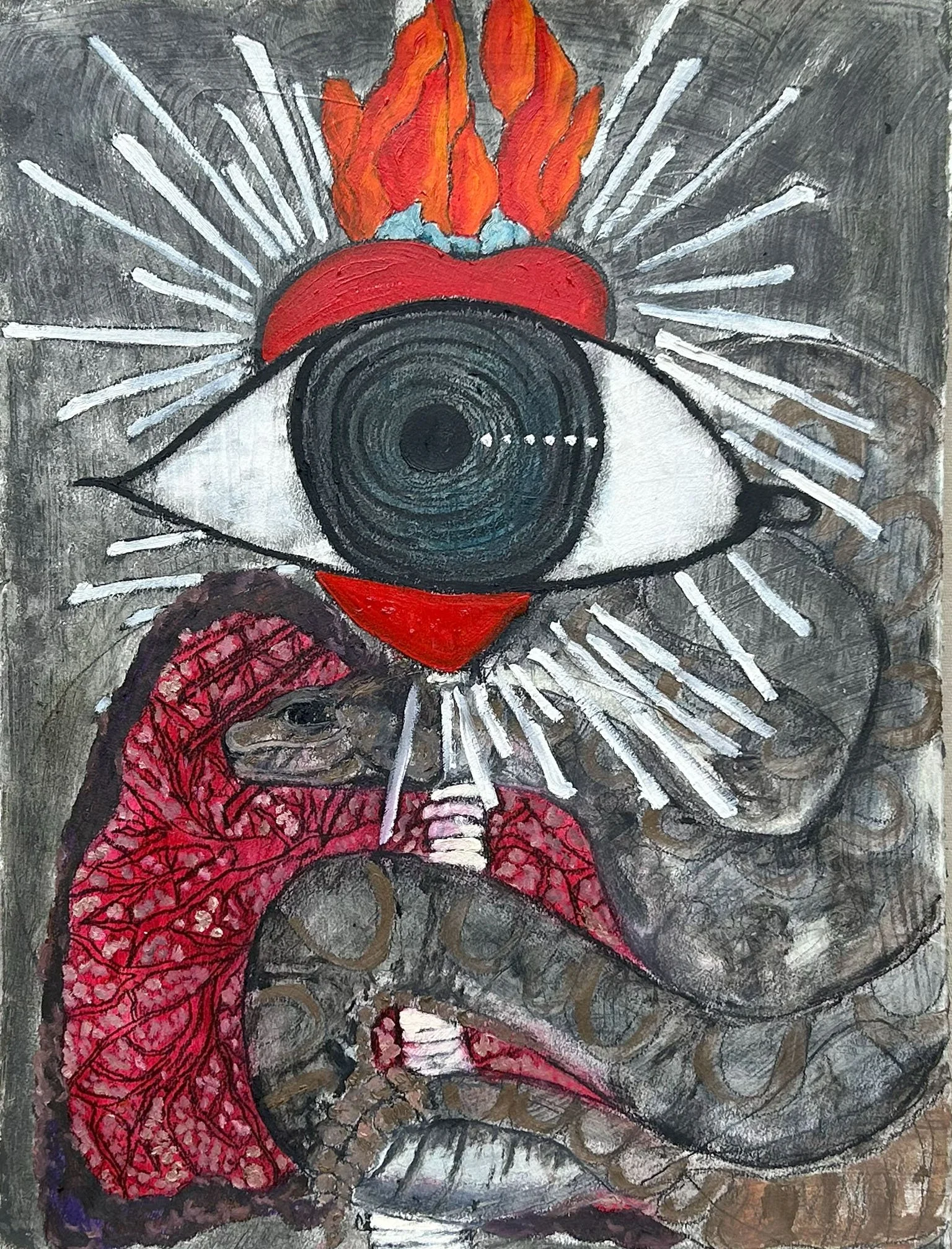 Oil Paint, Charcoal, Matte Medium on paper